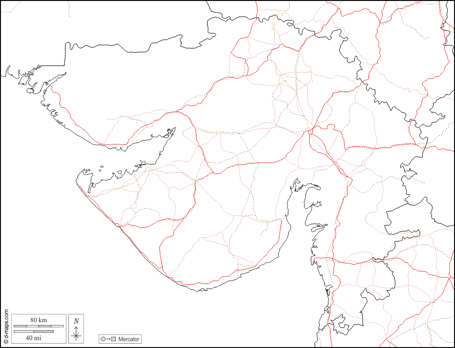 d-maps > Asia > India > Gujarat > boundaries, roads, white