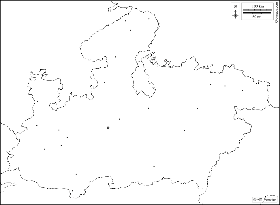 d-maps > Asia > India > Madhya Pradesh > boundaries, main cities, white