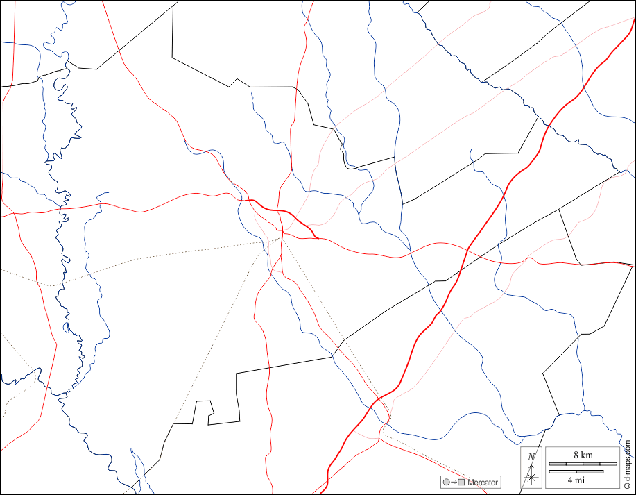 d-maps > United States of America (USA) > South Carolina > Sumter County > boundaries, hydrography, roads, white