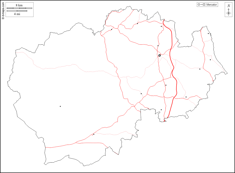 d-maps > Europe > United Kingdom > Durham > outline, main cities, roads, white