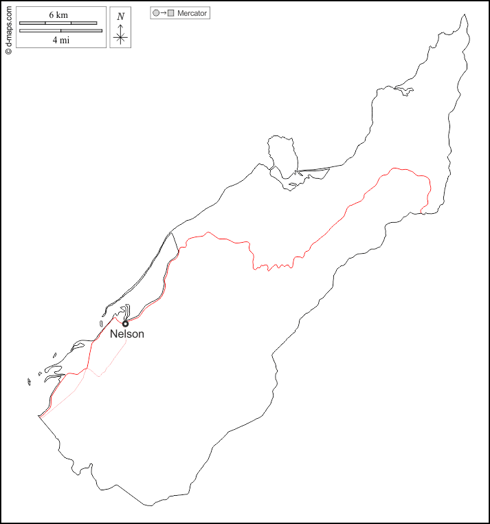 d-maps > Oceania > Nelson > outline, main cities, roads, names, white