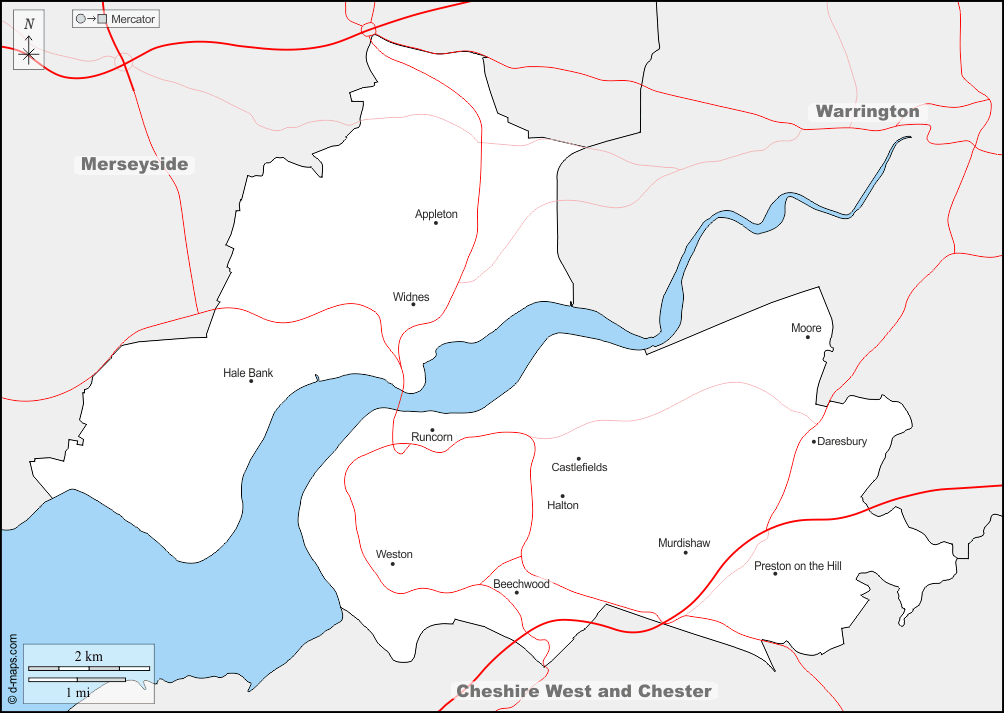 d-maps > Europe > United Kingdom > Halton > boundaries, neighborhoods, roads, names