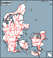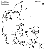 d-maps > Europa > Dinamarca > Dinamarca > contornos, hidrografía, principales ciudades, carreteras, blanco