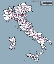d-maps > Europa > Italia > Italia > fronteras, hidrografía, principales ciudades, carreteras, nombres, blanco