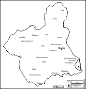 d-maps > Europa > España > Murcia > fronteras, principales ciudades, nombres, blanco