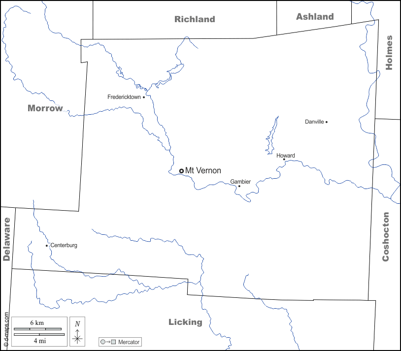 d-maps > Estados Unidos de América (USA) > Ohio > Condado de Knox > fronteras, hidrografía, principales ciudades, nombres, blanco