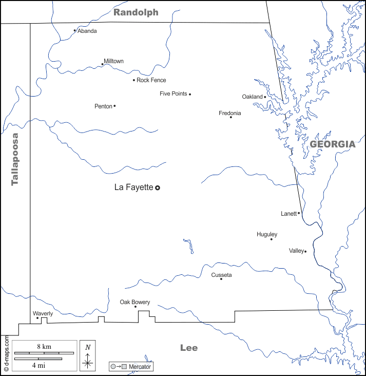 d-maps > Estados Unidos de América (USA) > Alabama > Condado de Chambers > fronteras, hidrografía, principales ciudades, nombres, blanco