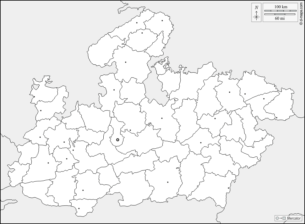 d-maps > Asia > India > Madhya Pradesh > fronteras, distritos, principales ciudades