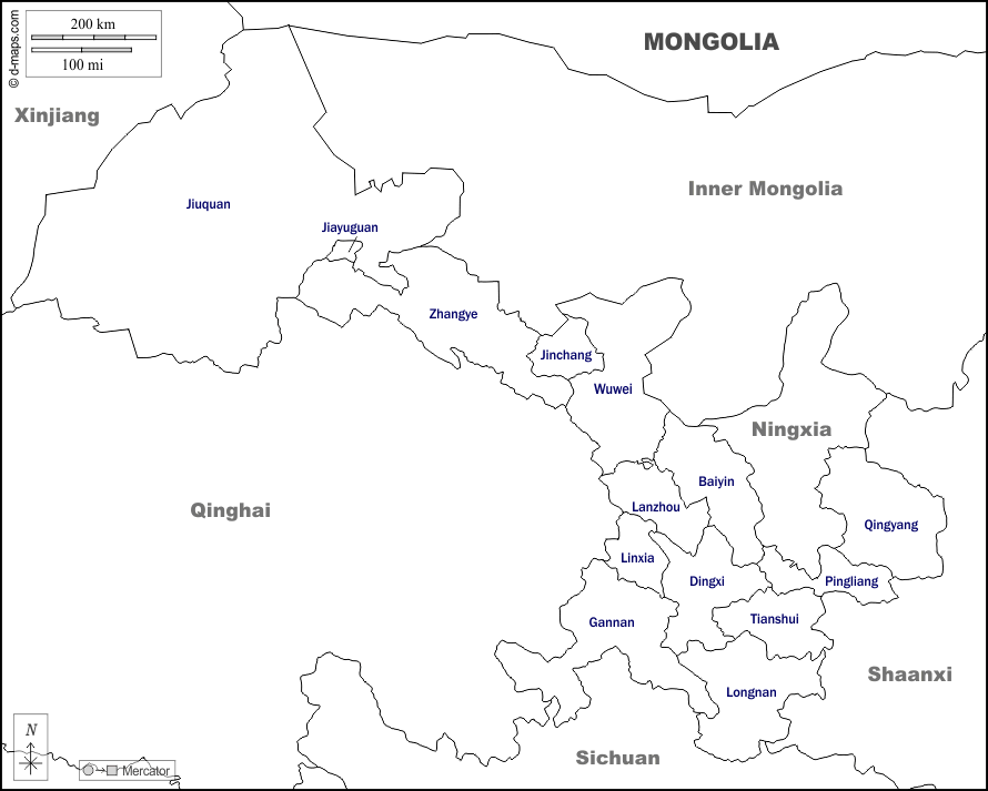 Asia > China > Gansu > fronteras, prefecturas, nombres, blanco