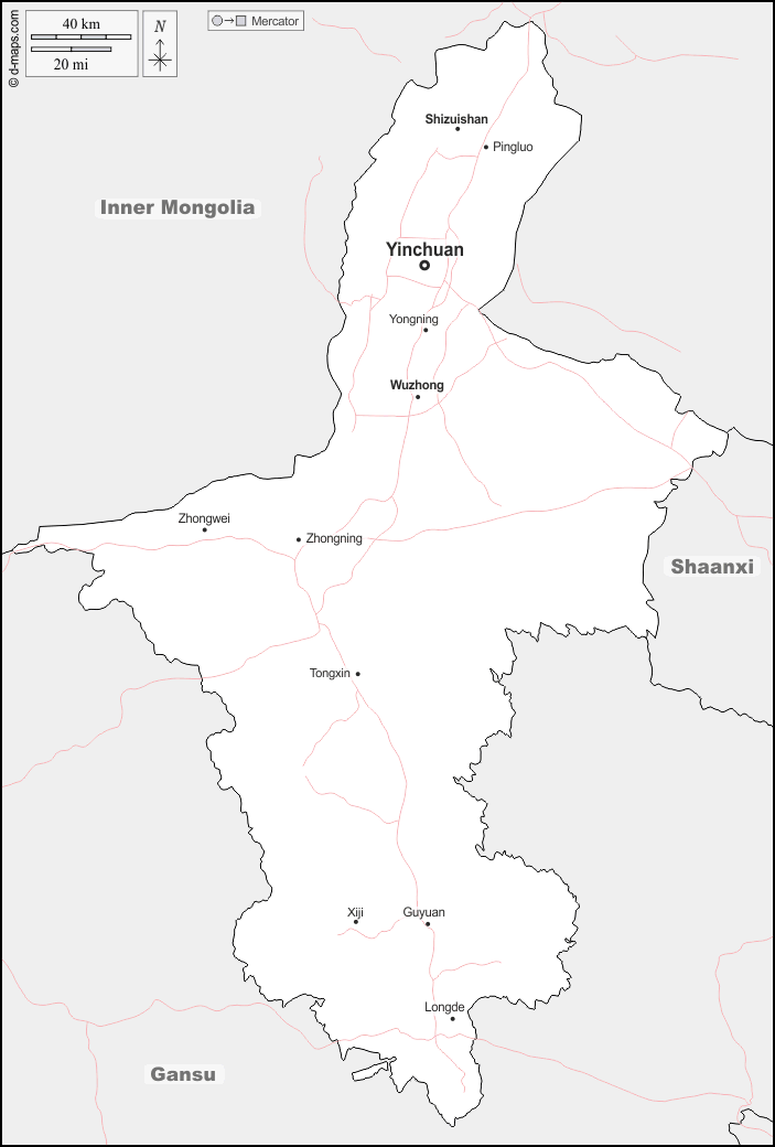 Asia > China > Ningxia > fronteras, principales ciudades, carreteras, nombres