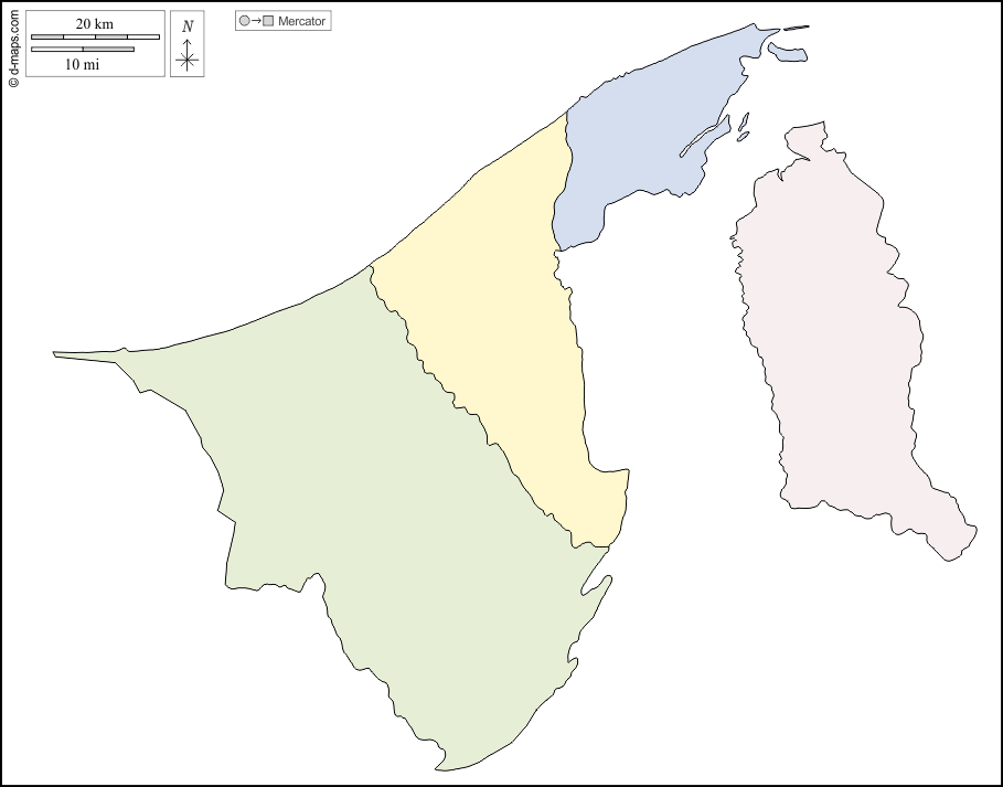 d-maps > Asia > Brunéi > contornos, distritos, color, blanco