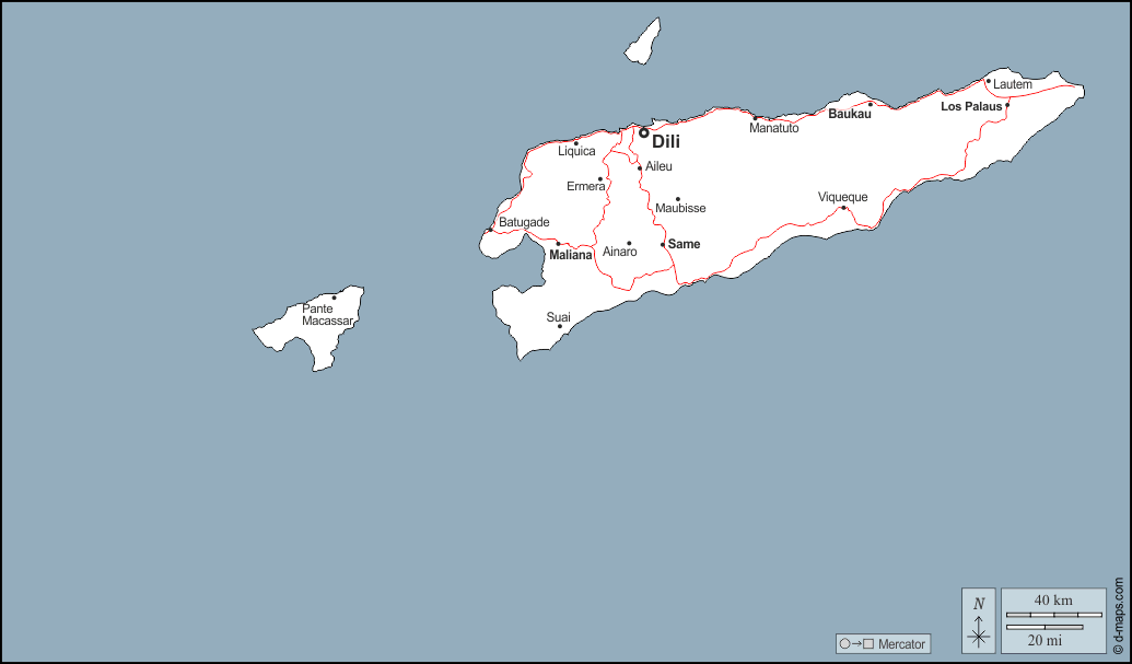 d-maps > Asia > Timor Oriental > contornos, principales ciudades, carreteras, nombres