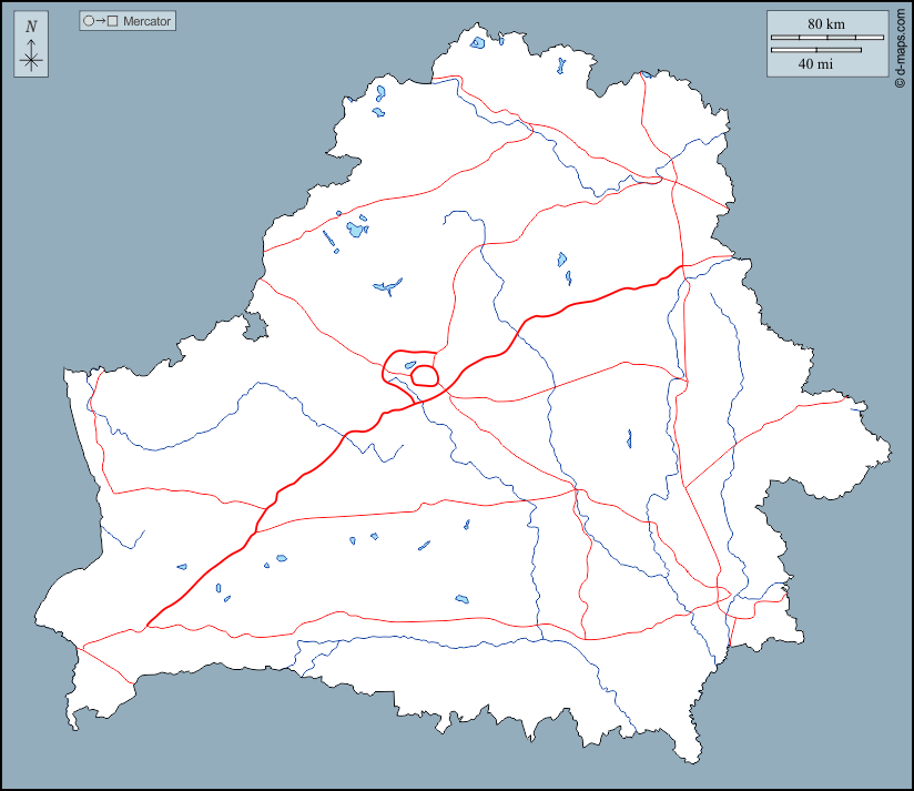d-maps > Europa > Bielorrusia > Bielorrusia > contornos, hidrografía, carreteras