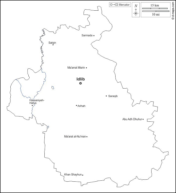 d-maps > Asia > Siria > Idlib > contornos, hidrografía, principales ciudades, nombres, blanco
