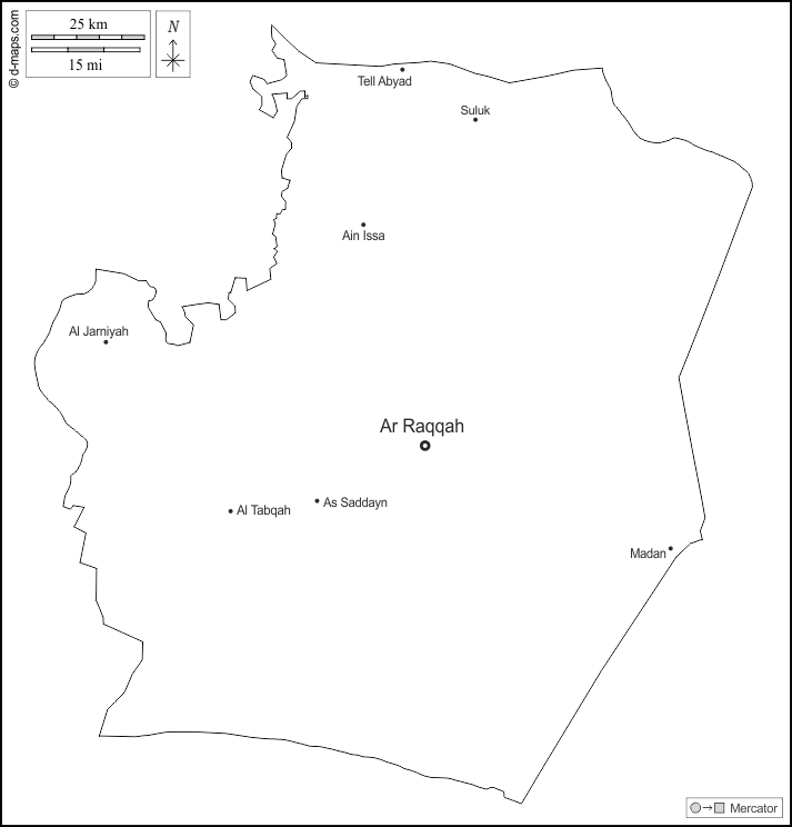 d-maps > Asia > Siria > Al-Raqa > contornos, principales ciudades, nombres, blanco