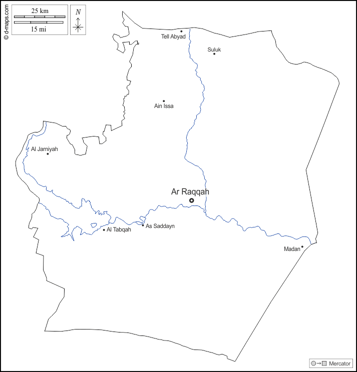 d-maps > Asia > Siria > Al-Raqa > contornos, hidrografía, principales ciudades, nombres, blanco