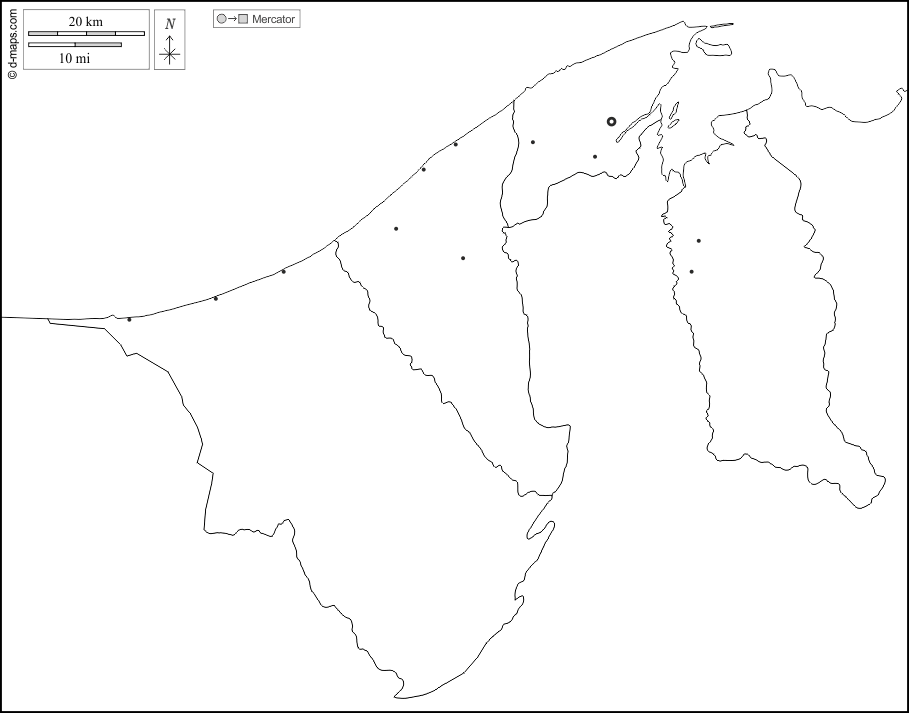 Asia > Brunéi > fronteras, distritos, principales ciudades, blanco