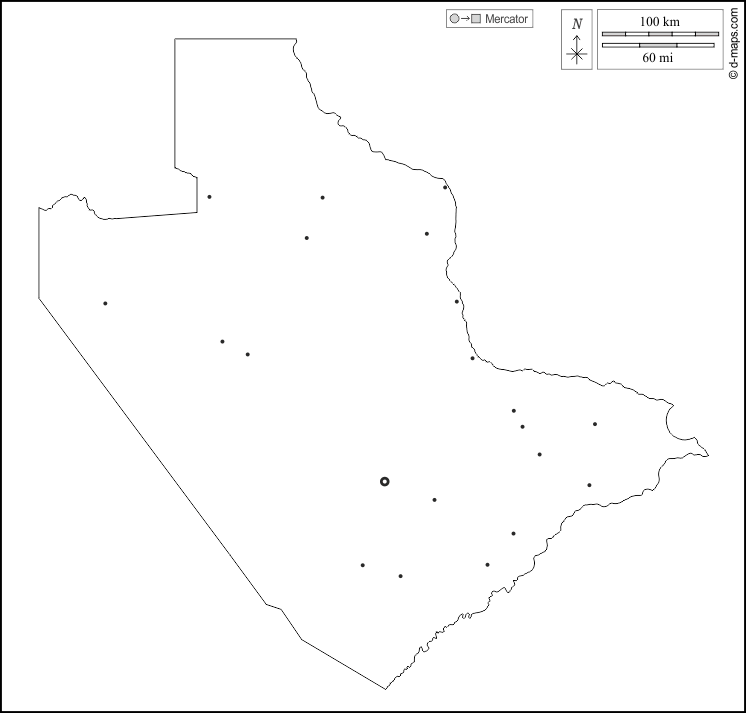 África > Botsuana > Distrito Central > contornos, principales ciudades, blanco
