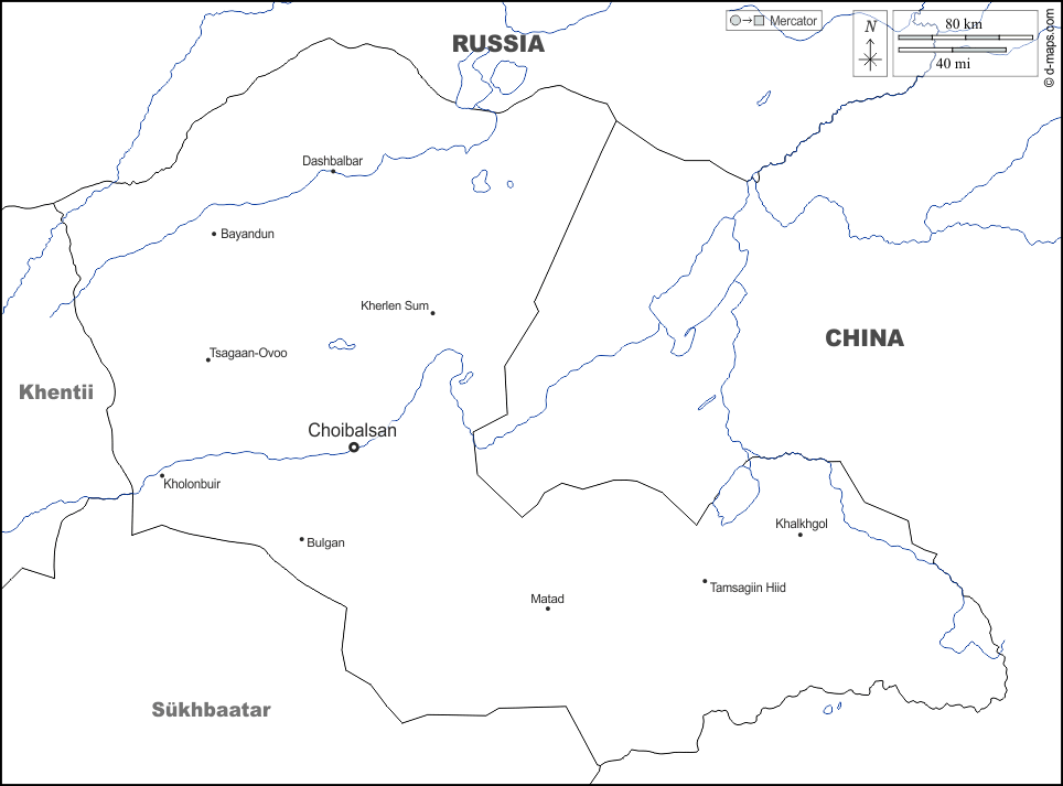 d-maps > Asia > Mongolia > Dornod > fronteras, hidrografía, principales ciudades, nombres, blanco