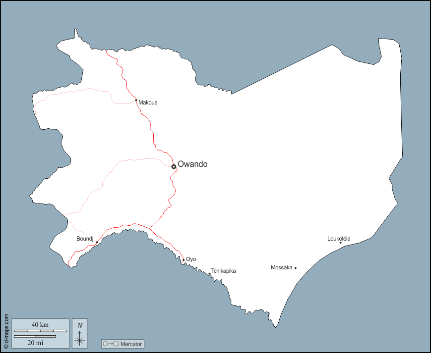 d-maps > África > Congo > Cuvette > contornos, principales ciudades, carreteras, nombres
