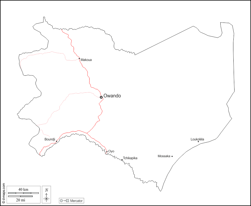 d-maps > África > Congo > Cuvette > contornos, principales ciudades, carreteras, nombres, blanco