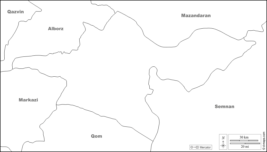 d-maps > Asia > Irán > Teherán > fronteras, nombres, blanco