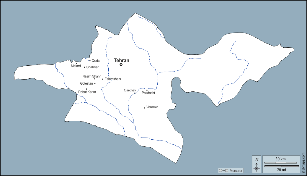 d-maps > Asia > Irán > Teherán > contornos, hidrografía, principales ciudades, nombres
