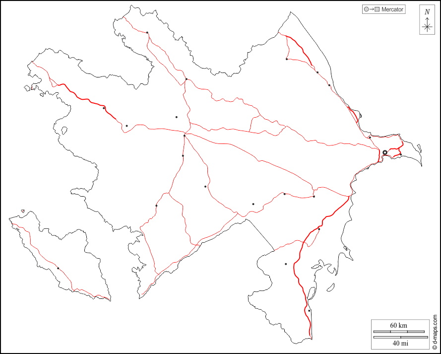 d-maps > Asia > Azerbaiyán > contornos, principales ciudades, carreteras, blanco