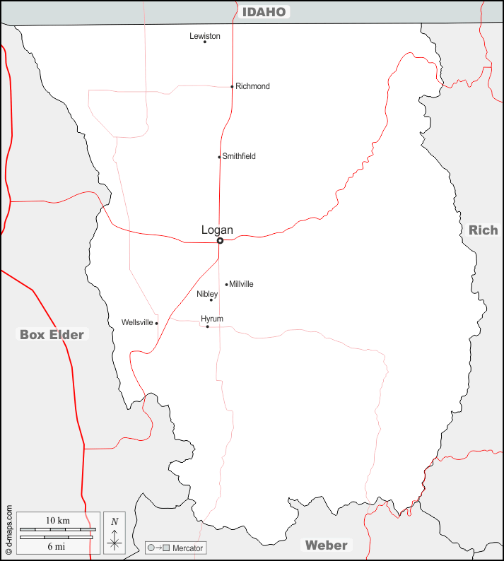 d-maps > Estados Unidos de América (USA) > Utah > Condado de Cache > fronteras, principales ciudades, carreteras, nombres
