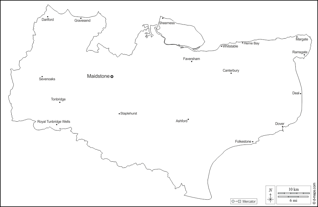 d-maps > Europa > Reino Unido > Kent > contornos, principales ciudades, nombres, blanco