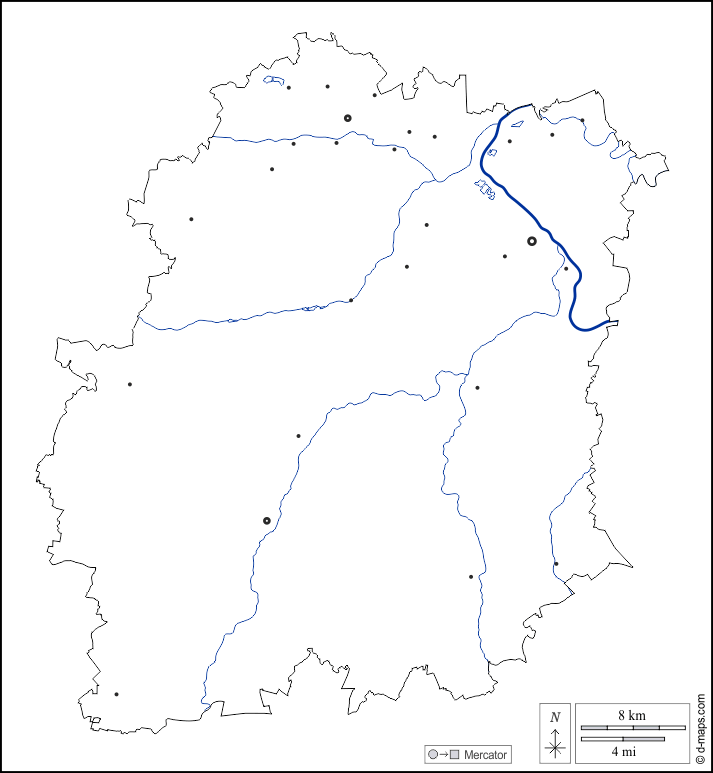 d-maps > Europe > France > Essonne > contours, hydrographie, principales villes, blanc