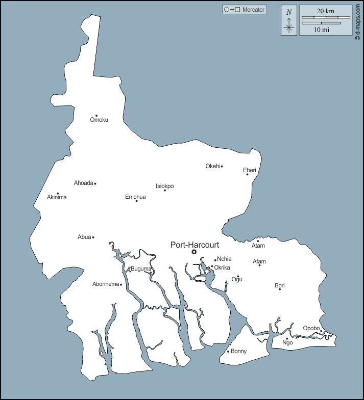 d-maps > Afrique > Nigeria > Rivers > contours, principales villes, noms