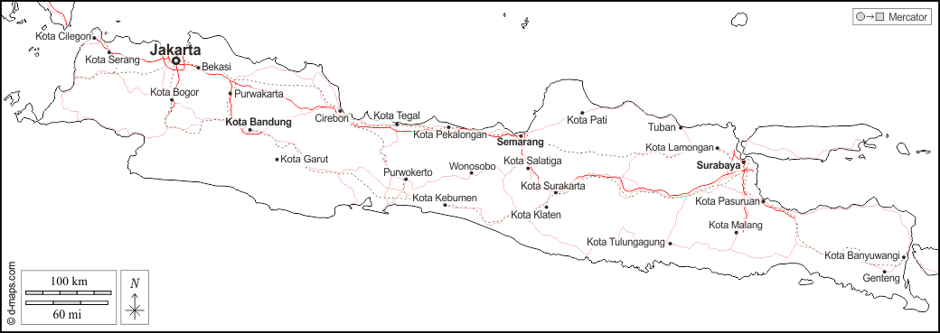 Asie > Indonésie > Java > frontières, principales villes, routes, noms, blanc