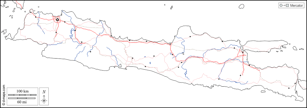 Asie > Indonésie > Java > frontières, hydrographie, principales villes, routes, blanc