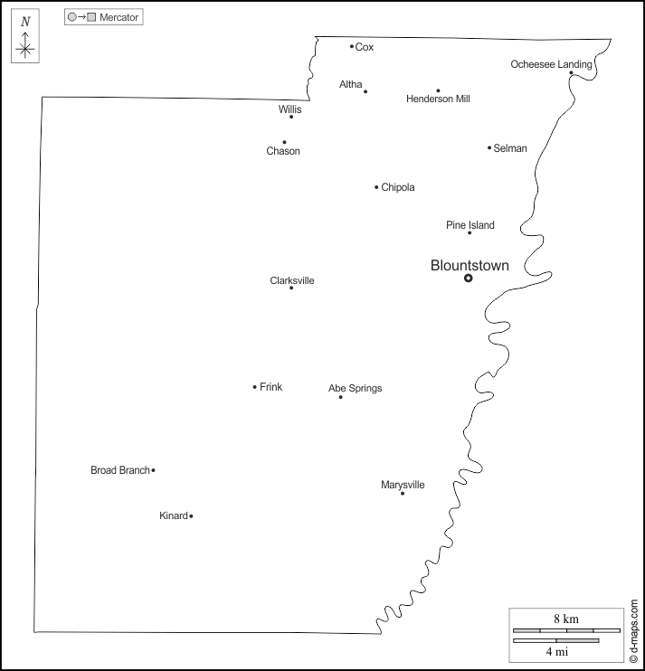 d-maps > Etats-Unis d'Amérique (USA) > Floride > Comté de Calhoun > contours, principales villes, noms, blanc