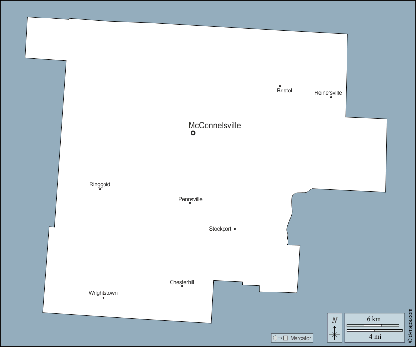 d-maps > Etats-Unis d'Amérique (USA) > Ohio > Comté de Morgan > contours, principales villes, noms