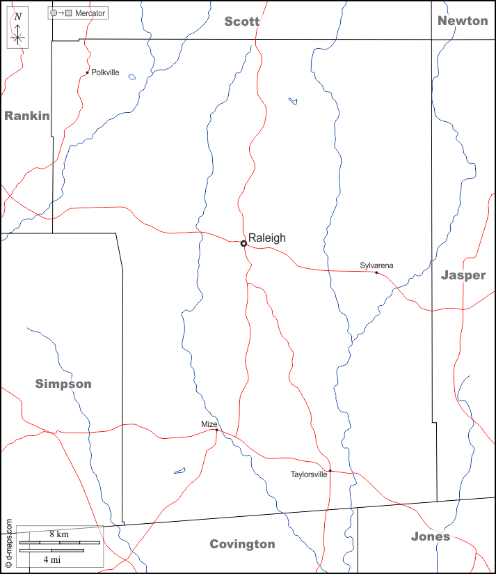 d-maps > Etats-Unis d'Amérique (USA) > Mississippi > Comté de Smith > frontières, hydrographie, principales villes, routes, noms, blanc