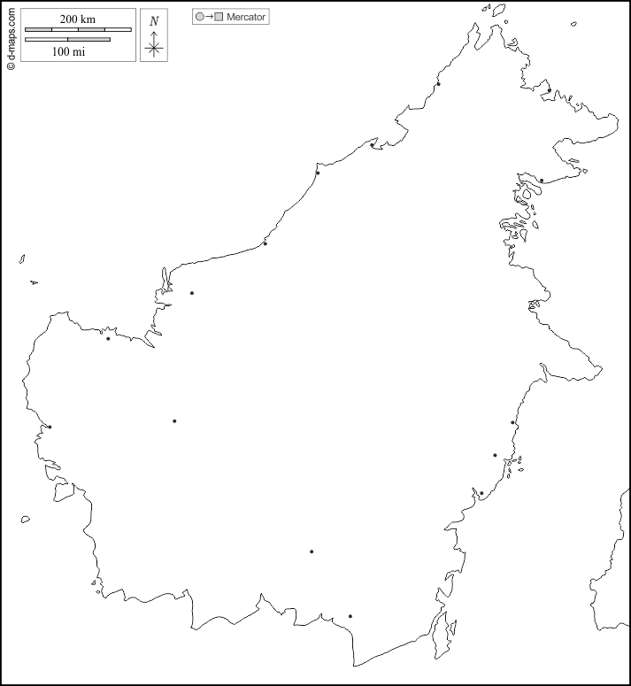 d-maps > Asie > Bornéo > littoraux, principales villes, blanc