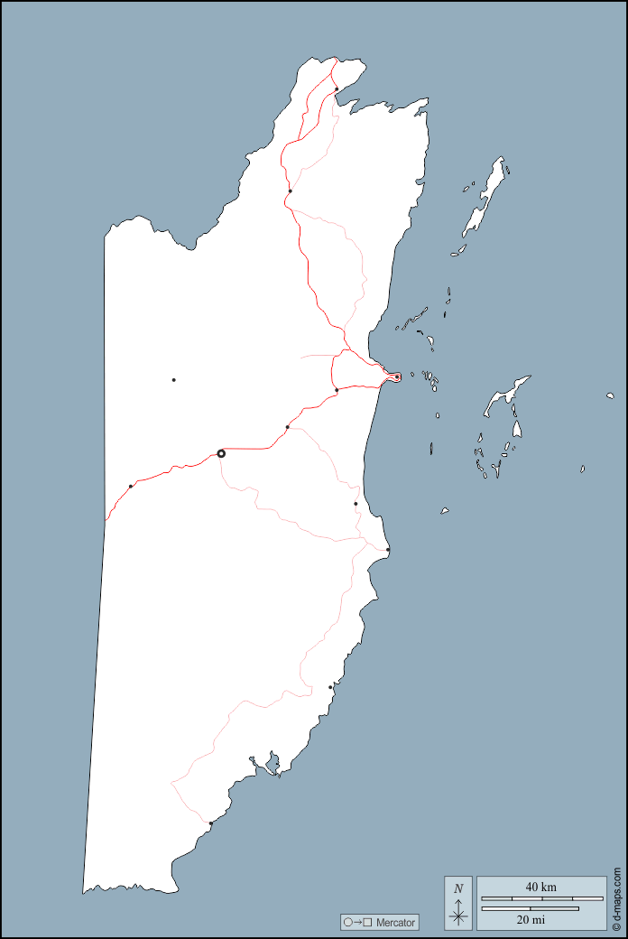 d-maps > Amériques > Belize > contours, principales villes, routes