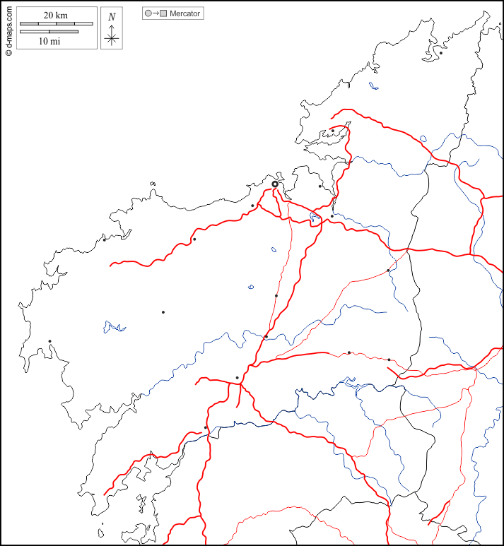 d-maps > Europe > Espagne > La Corogne > frontières, hydrographie, principales villes, routes, blanc