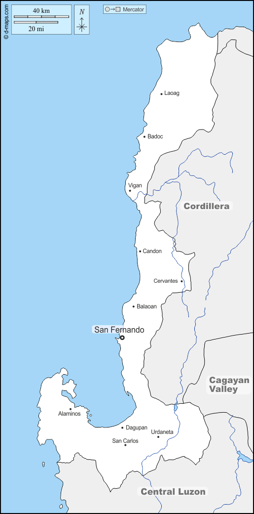d-maps > Asie > Philippines > Ilocos > frontières, hydrographie, principales villes, noms