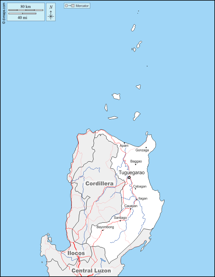 d-maps > Asie > Philippines > Cagayan > frontières, hydrographie, principales villes, routes, noms