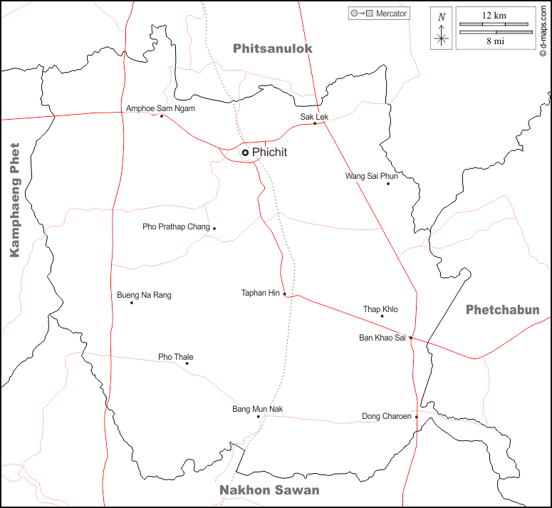 d-maps > Asie > Thaïlande > Phichit > frontières, principales villes, routes, noms, blanc