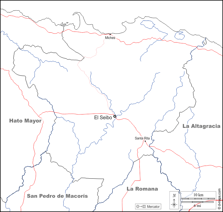 d-maps > Amériques > République dominicaine > El Seibo > frontières, hydrographie, principales villes, routes, noms, blanc