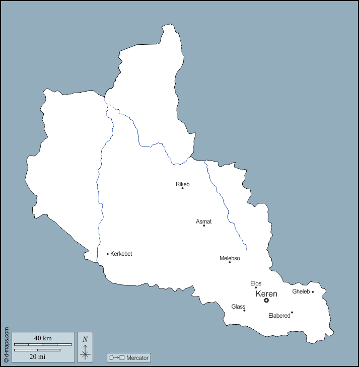 d-maps > Afrique > Erythrée > Anseba > contours, hydrographie, principales villes, noms