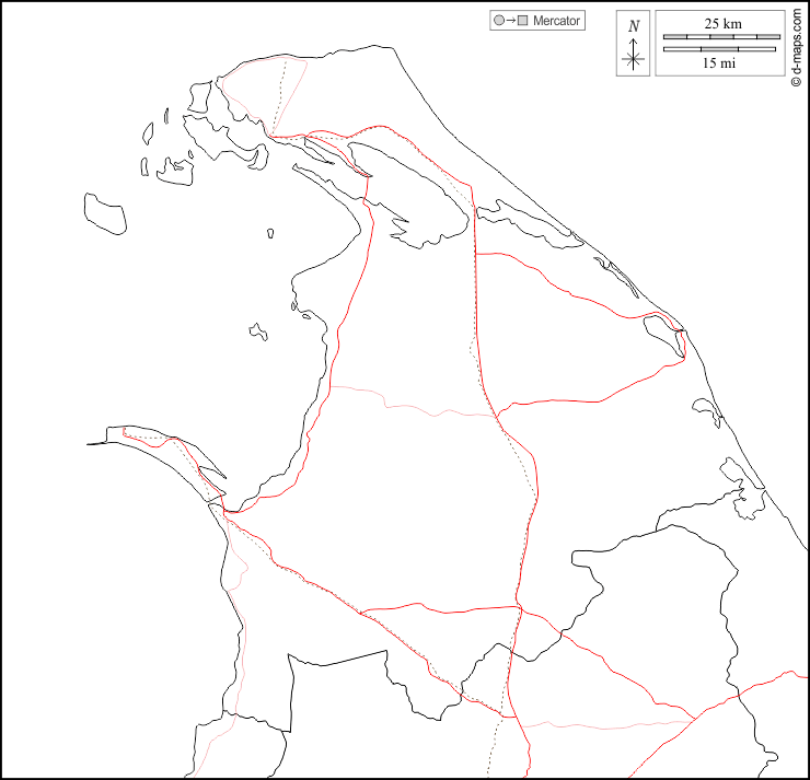 d-maps > Asie > Sri Lanka > Province du Nord > frontières, routes, blanc