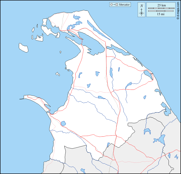 d-maps > Asie > Sri Lanka > Province du Nord > frontières, hydrographie, routes