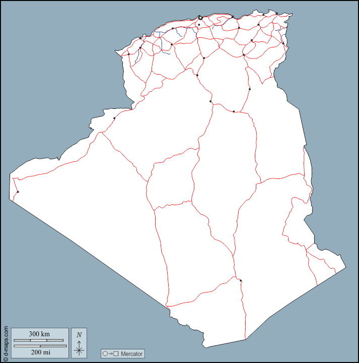 d-maps > Afrique > Algérie > Algérie > contours, hydrographie, principales villes, routes