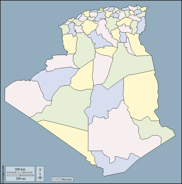 d-maps > Afrique > Algérie > Algérie > contours, wilayas, couleur