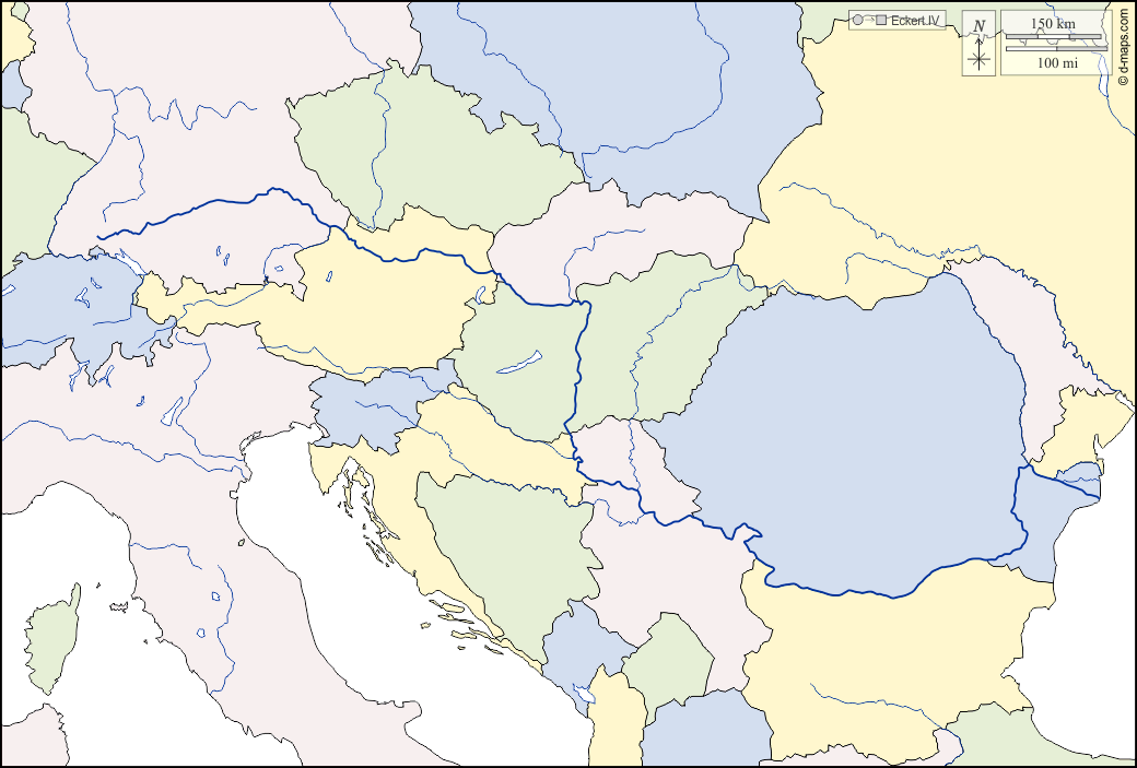 d-maps > Europe > Europe danubienne > hydrographie, Etats, couleur, blanc